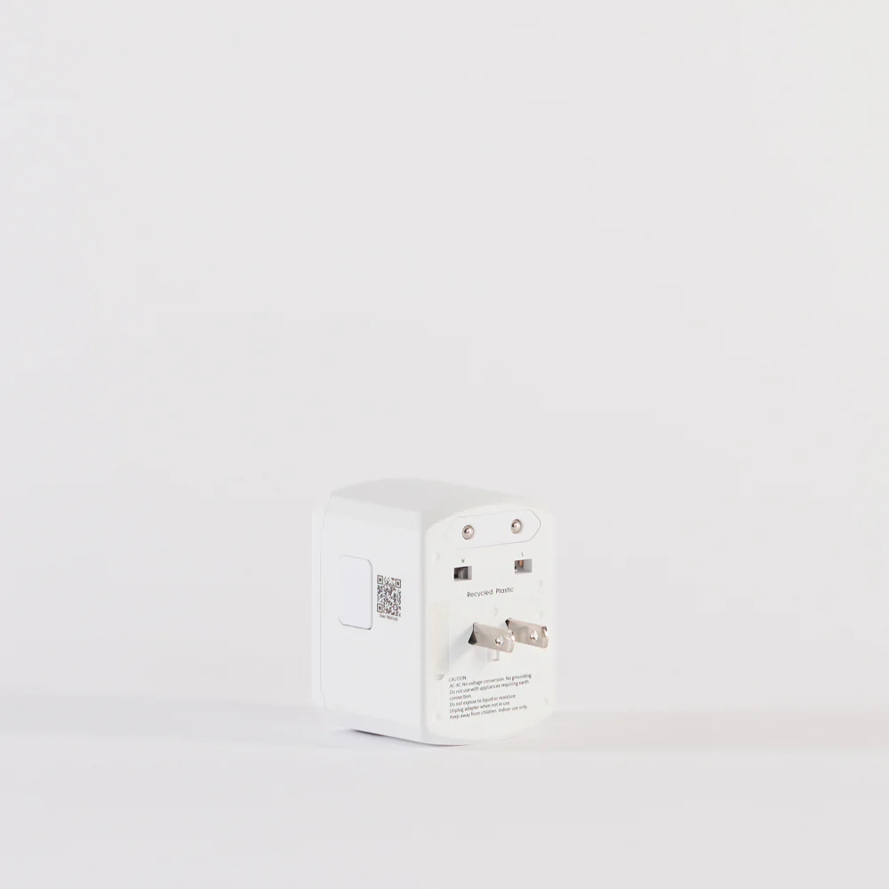 Adaptateur de voyage universel, idéal pour tous vos déplacements Recharge simultanée : 3 ports USB + 1 port USB-C (15W) Prises EU / UK / AU / US compatibles dans 150+ pays Socle universel avec bouton poussoir Marquage : Made in France Dimensions: 7.1 x 5.4 x 5.3 cm