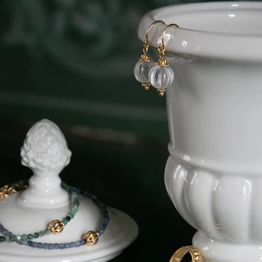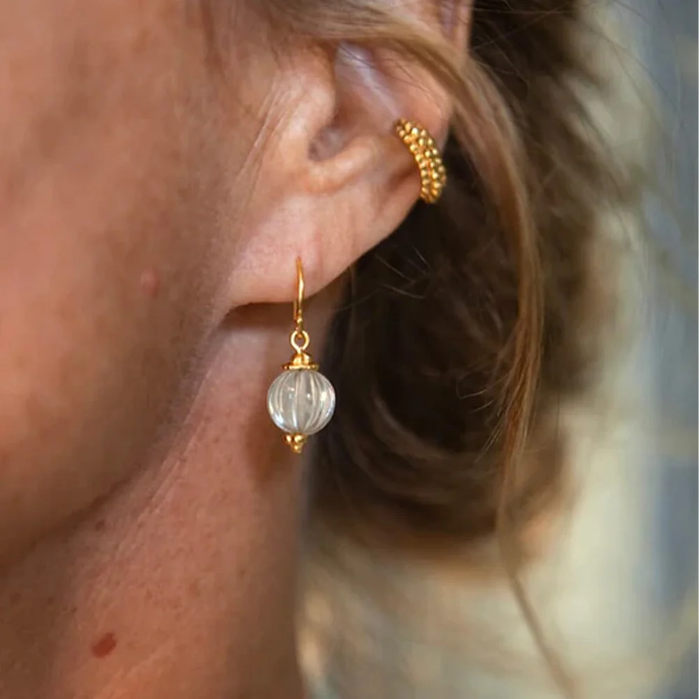 - Boucles d’oreilles Lucrèce en vermeil (argent plaqué or 5 microns) et Cristal de roche
